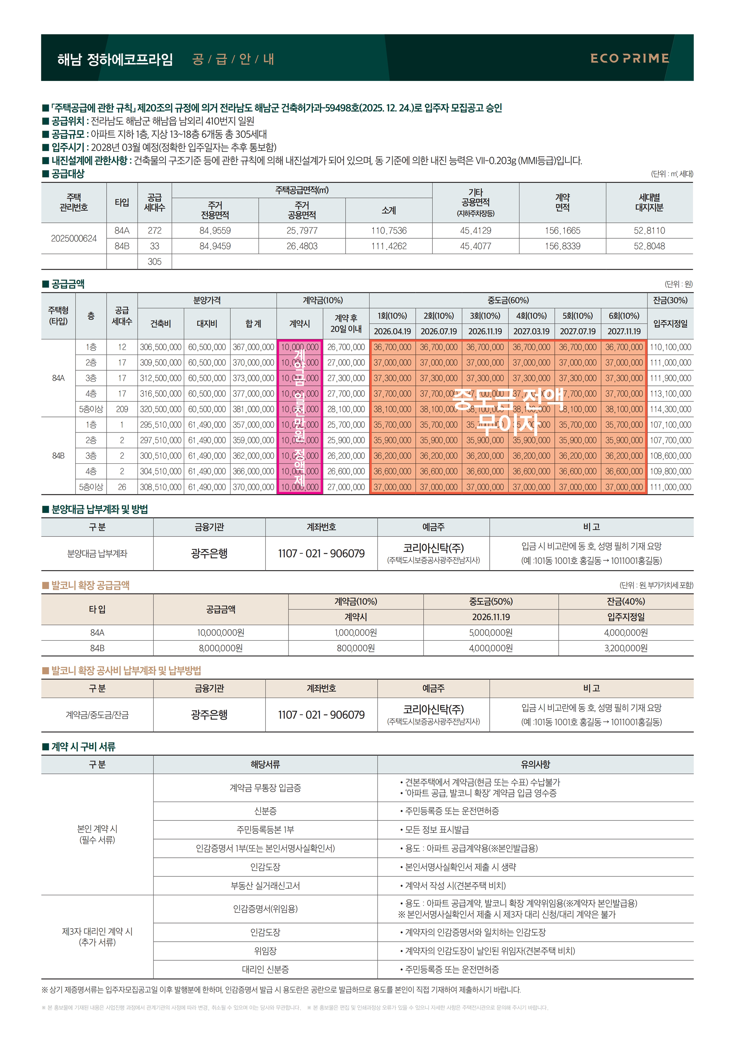 특별공급 서류안내